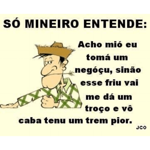 SÓ MINEIRO ENTENDE: Acho mió eu tomá um negóçu, sinão esse friu vai me dá um troço e vô caba tenu um trem pior. JCO