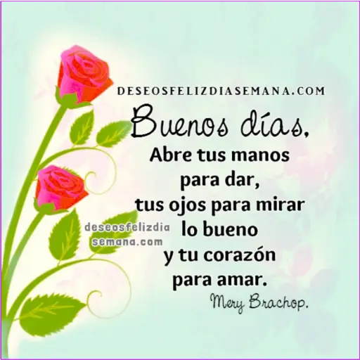 DESEOSFELIZDIASEMANA.COM Buenos días. Abre tus manos para dar, tus ojos para mirar deseosfelizdia lo bueno semana.com y tu corazón para amar. Mery Brachop.