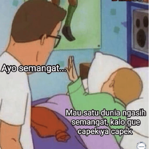 Ayo semangat... Mau satu dunia ngasih semangat, kalo gue capek ya capek