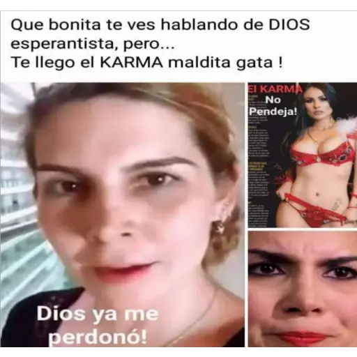 Que bonita te ves hablando de DIOS esperantista, pero... Te llego el KARMA maldita gata ! Dios ya me perdonó! EI KARMA No Pendeja!