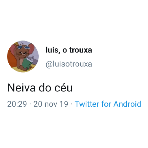 luis, o trouxa @luisotrouxa Neiva do céu 20:29 20 nov 19 Twitter for Android .