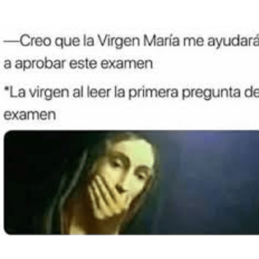 -Creo que la Virgen María me ayudará a aprobar este examen "La virgen al leer la primera pregunta de examen