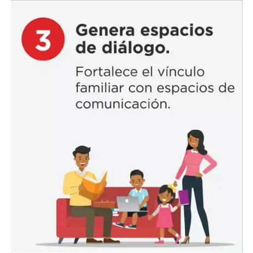 Genera espacios 3 de diálogo. Fortalece el vínculo familiar con espacios de comunicación.