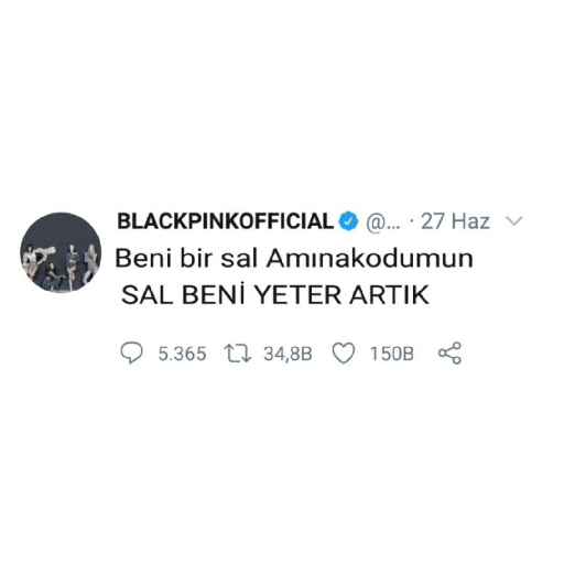 BLACKPINKOFFICIAL @.... 27 Haz Beni bir sal Amınakodumun SAL BENİ YETER ARTIK 5.365 34,8B 150B