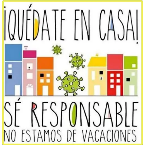 QUÉDATE EN CASAI 用 SÉ RESPONSABLE NO ESTAMOS DE VACACIONES