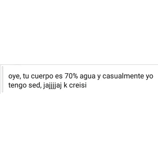 oye, tu cuerpo es 70% agua y casualmente yo tengo sed, jajjjaj k creisi