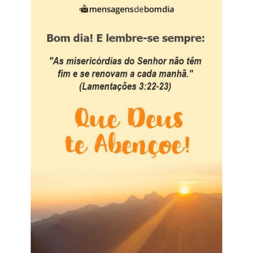 mensagens debomdia Bom dia! E lembre-se sempre: "As misericórdias do Senhor não têm fim e se renovam a cada manhã." (Lamentações 3:22-23) Que Deus te Abençoe!